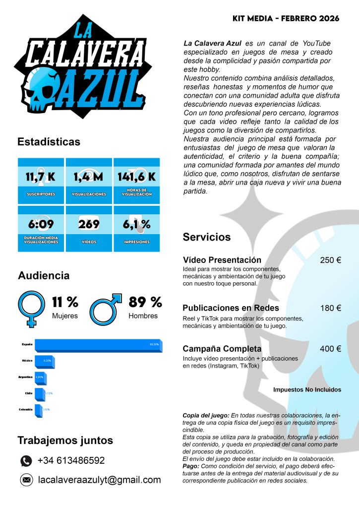 Desde reseñas originales y honestas y tops temáticos hasta coberturas de novedades, cada semana conectamos con una comunidad apasionada por los juegos de mesa. Y gracias a esta audiencia activa, hoy ofrecemos servicios audiovisuales especializados para editoriales, autores y campañas de micromecenazgo.